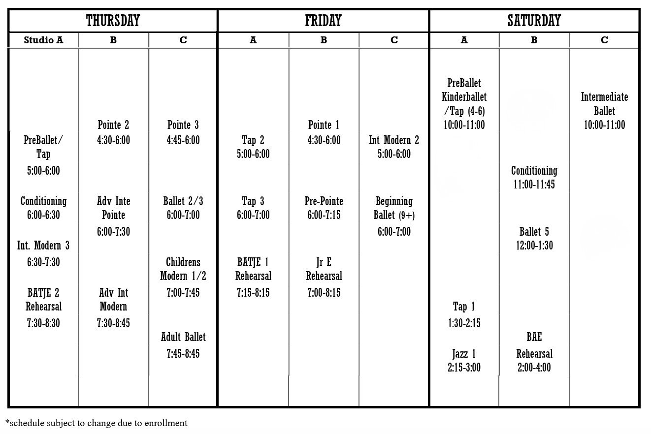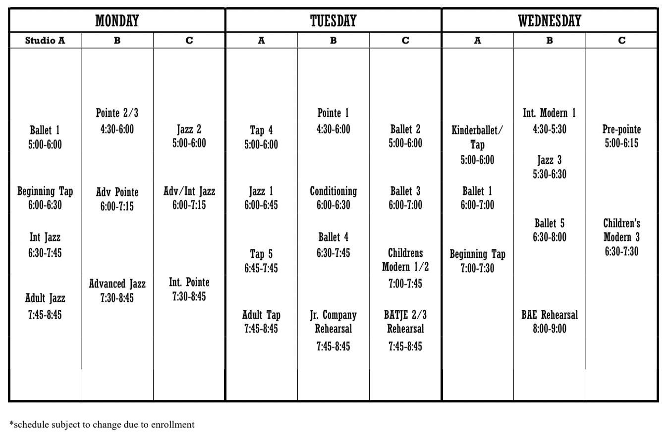 Our faculty works closely with each student to ensure proper development as a dancer. With this in mind, placement in a particular class is at the discretion of the directors. As classes become more advanced, so do the requirements for participation. Please contact us if you have questions about which class is best for you or your child.